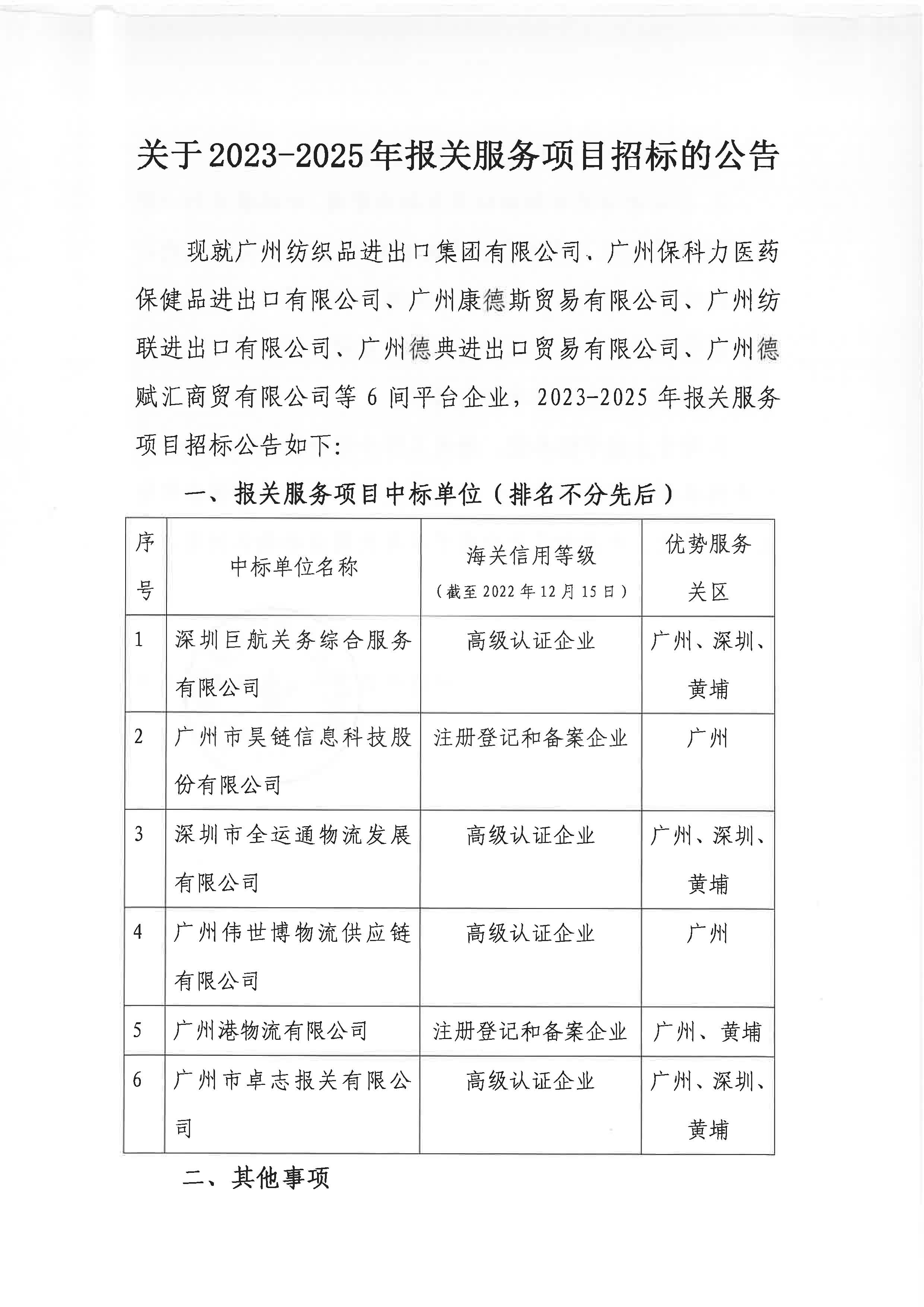 關(guān)于2023-2025年報關(guān)服務項目招標的公告