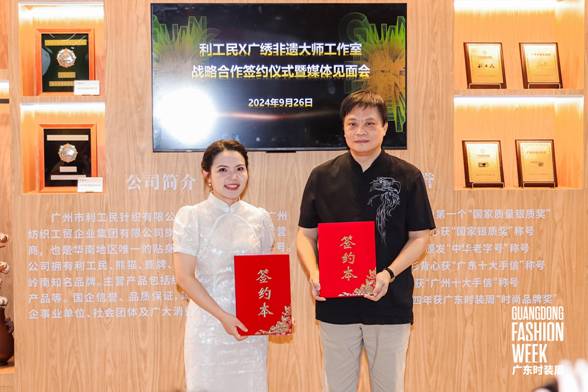 9月26日上午,百年中華老字號利工民與廣繡非遺大師工作室在2024廣東時裝周-秋季舉辦戰(zhàn)略合作簽約儀式暨媒體見面會。活動由廣東省服裝服飾行業(yè)協(xié)會副會長兼秘書長陳韶通主持,邀請了廣東省服裝服飾行業(yè)協(xié)會、廣東省服裝設(shè)計師協(xié)會、廣州紡織工貿(mào)企業(yè)集團有限公司、服裝行業(yè)企業(yè)代表和媒體代表等嘉賓出席共同見證本次活動。
