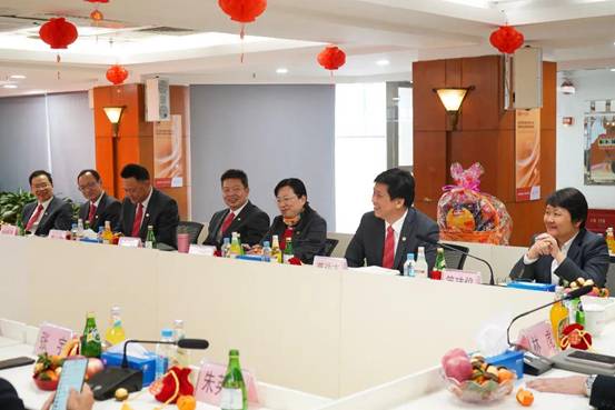 領(lǐng)導(dǎo)一行在公司15樓會議室舉行了開工座談會。公司黨委書記、董事長簡瑋儀向集團(tuán)領(lǐng)導(dǎo)們匯報(bào)了新年首月紡織公司主動出擊,智鏈全球,以高質(zhì)量發(fā)展新成效取得了“開門紅”。集團(tuán)的大力支持將激勵(lì)紡織公司繼續(xù)突破,向新向上向未來。