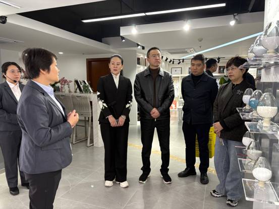 招商組一行參觀了紡織公司八樓形象展廳。領(lǐng)導(dǎo)們向來(lái)賓詳細(xì)介紹了公司在業(yè)務(wù)布局、產(chǎn)品研發(fā)、市場(chǎng)拓展等方面的發(fā)展情況及創(chuàng)新舉措,招商組對(duì)公司在產(chǎn)業(yè)轉(zhuǎn)型升級(jí)上取得的成就表示高度贊賞。