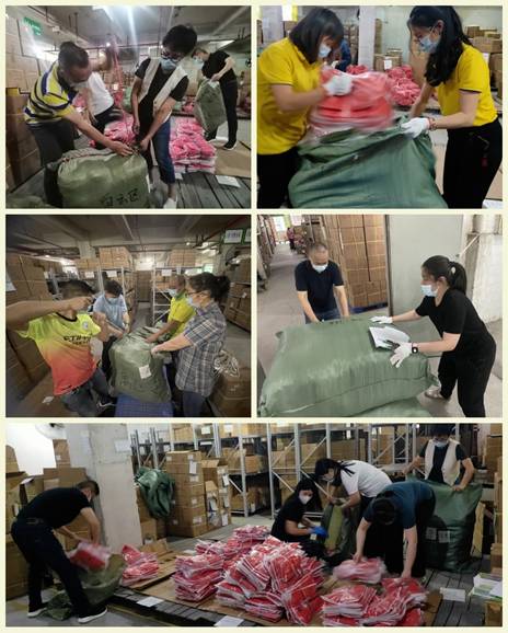 4月11日上午11時(shí)許,當(dāng)紡織公司收到廣州輕工集團(tuán)要求定制5萬(wàn)件印有“我是共產(chǎn)黨員”字樣的志愿紅馬甲任務(wù)后,公司黨委高度重視,第一時(shí)間指導(dǎo)利工民組建黨員團(tuán)員突擊隊(duì)和生產(chǎn)專班,制訂詳細(xì)工作計(jì)劃及分工。一周內(nèi)出這么大批的貨是一個(gè)不小的挑戰(zhàn),而且馬甲貨源還分散在廣州、佛山及浙江一些城市的倉(cāng)庫(kù)中。如何才能以最快速度調(diào)集貨源、如何根據(jù)需求安排好每日出貨量、如何精準(zhǔn)配送到每條街道……這些現(xiàn)實(shí)的問(wèn)題都擺在了工作專班面前。面對(duì)這些問(wèn)題,利工民總經(jīng)理鄭力強(qiáng)迅速理清思路、靠前指揮,一邊率領(lǐng)工作專班與上級(jí)部門(mén)、供應(yīng)商保持密切聯(lián)系,對(duì)接好各個(gè)工作環(huán)節(jié);一邊積極做好內(nèi)部人員調(diào)配工作,確保高效完成出貨任務(wù)。